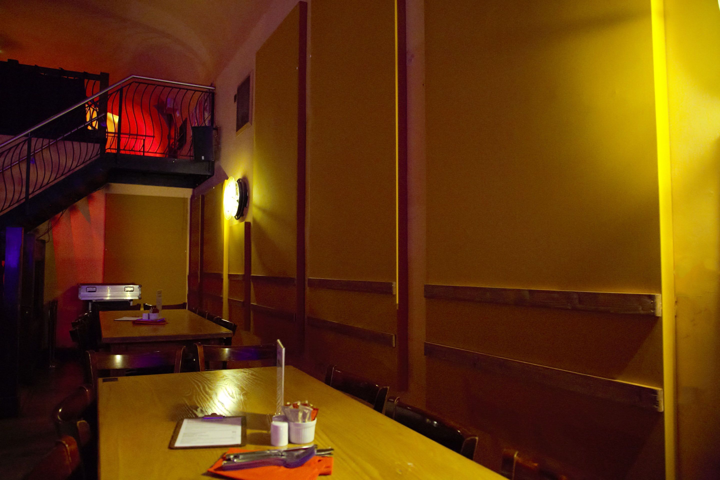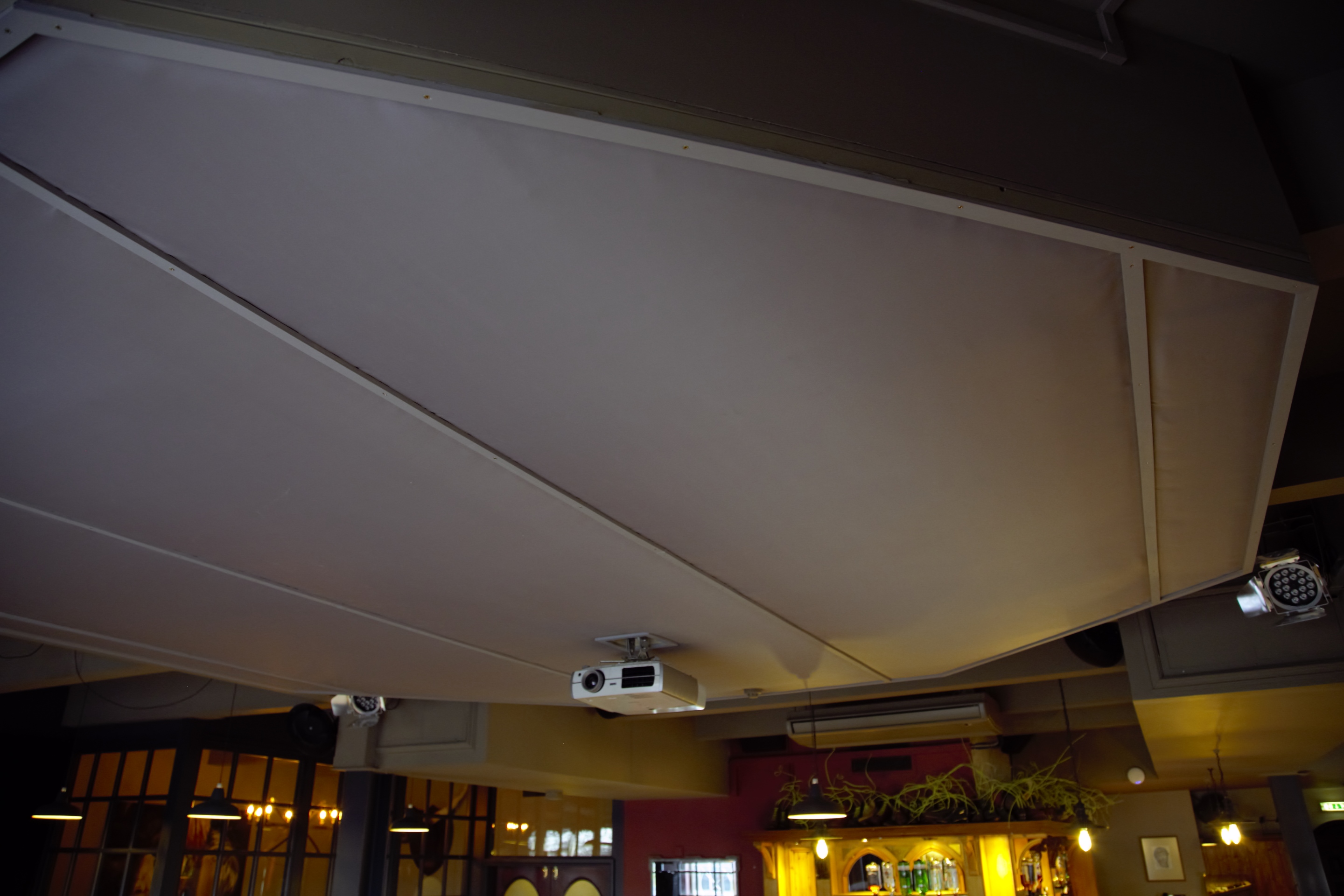 Bar and Music Venue. The sound during live acts and DJs was very harsh and loud due to the lack of absorbent surfaces. Apart from the curtains, all baffles are ceiling mounted, minimising visual impact.